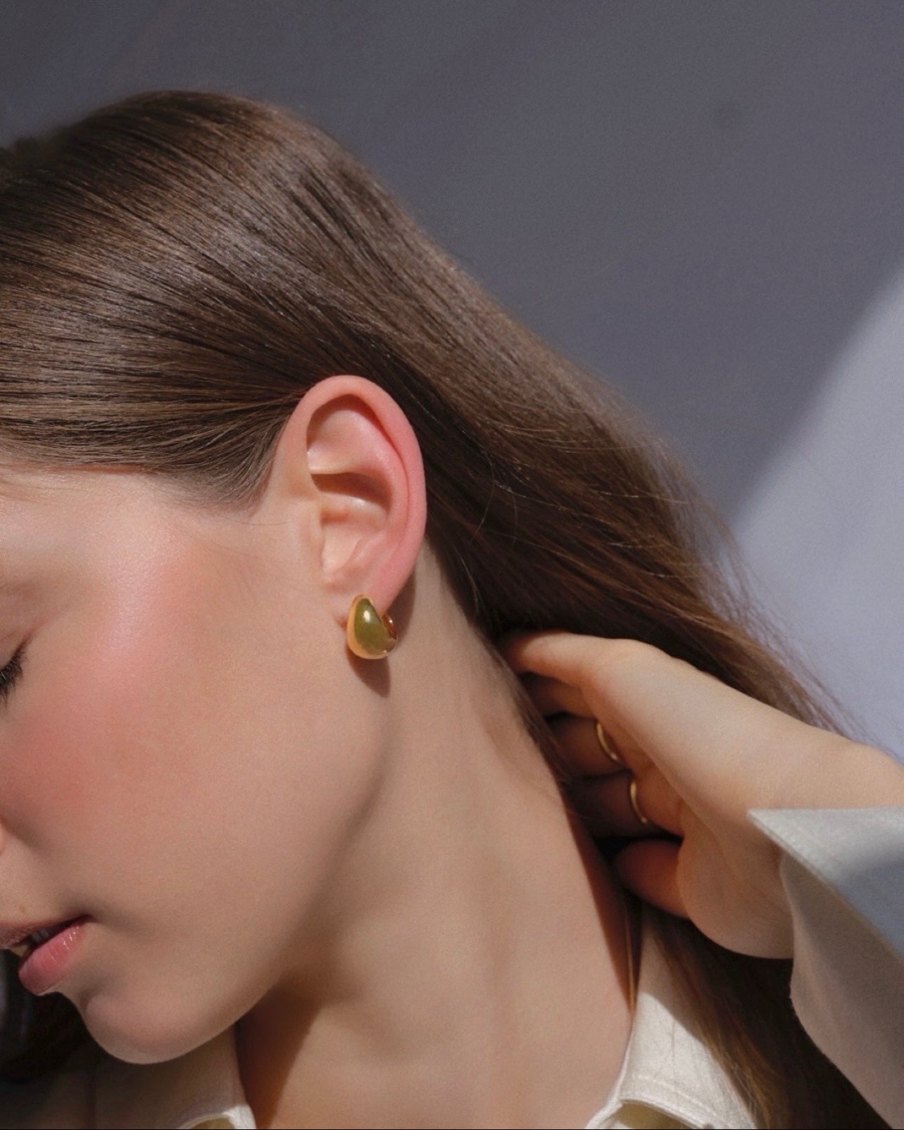Sculptural puffy orb-shaped hoops with a hinged closure and 925 sterling silver post.