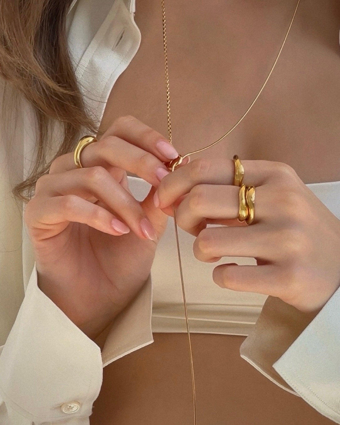 A sculptural ring defined by fluid, organic curves and the refined ease of modern minimalism. Crafted with exceptional craftsmanship in a fine jewelry studio. Beautiful worn stacked in twos or threes, or paired with the Ingrid 1 Bold Curved Ring.