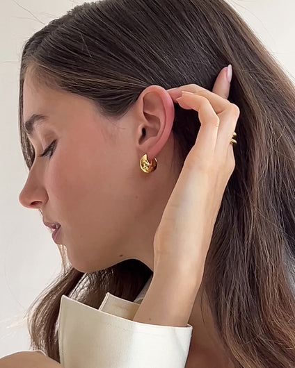 Sculptural puffy orb-shaped hoops with a hinged closure and 925 sterling silver post.